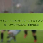 彼のスペイン代表チームへの貢献には、2008年と2012年の欧州選手権での勝利も含まれます。イニエスタの遺産は、スポーツマンシップと献身によって特徴付けられ、サッカー界で愛される存在となっています。