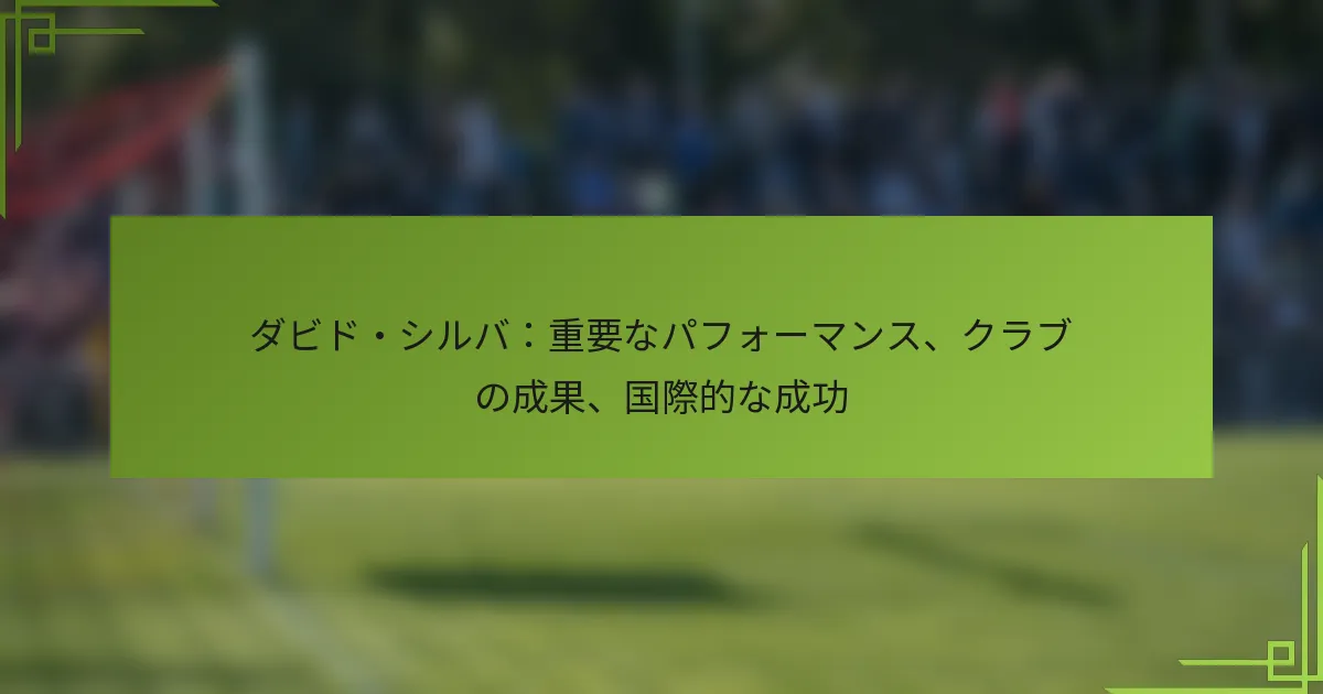 ダビド・シルバ:重要なパフォーマンス、クラブの成果、国際的な成功