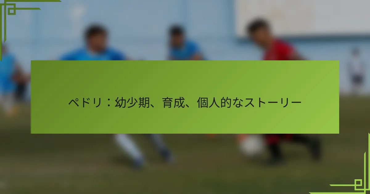 ペドリはスペインのテゲステで生まれ、彼のサッカーへの情熱に深く影響を与えた formative な幼少期を経験しました。彼の若い頃の成長は、重要なトレーニングや競技によって特徴づけられ、彼の才能とレジリエンスを示しました。家族やコミュニティの支えを受けて、ペドリの旅は彼のスポーツキャリアを形作った価値観やインスピレーションを反映しています。 ペドリの幼少期と背景はどのようなものですか?…